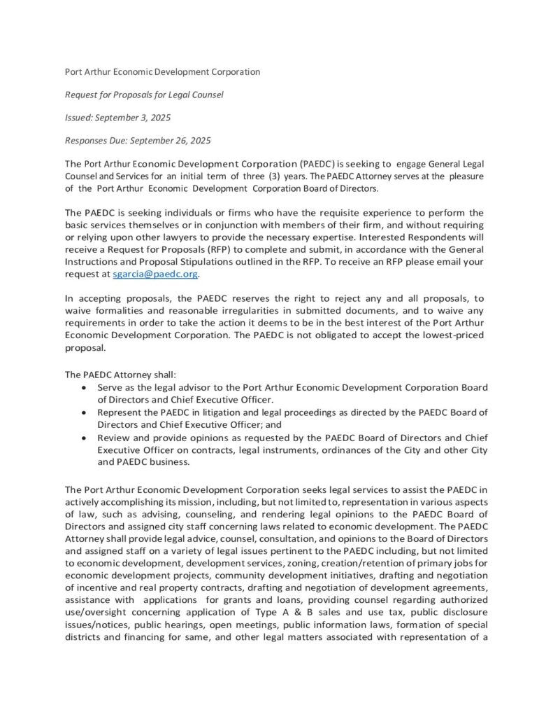 Copyright © 2026 · Port Arthur Economic Development Corporation · All Rights Reserved.